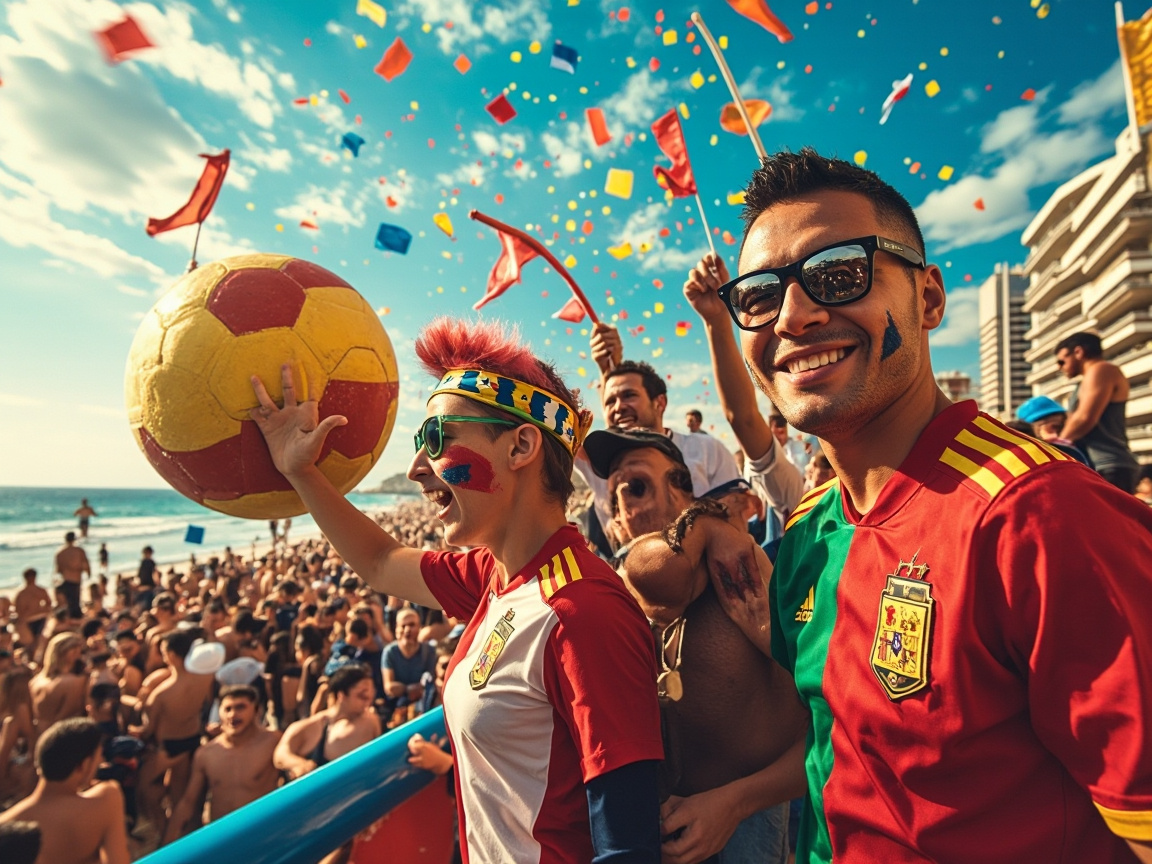 While the obvious choice is the red and yellow of Spain, local fashion during matches has evolved to include beachwear integrated with team colors. The most popular combination is red swimming shorts or bikinis with yellow accessories – practical for the summer heat while showing national pride.